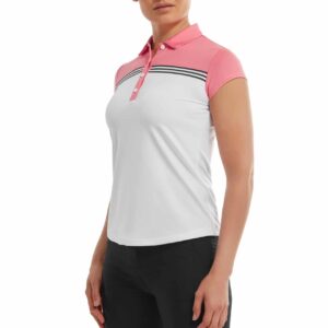 Footjoy Engineered Colour Block Lisle Ladies Polo balta/gaiši koraļļu krāsā
