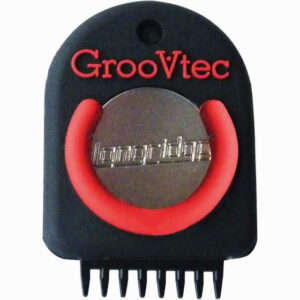 GrooVtec ķemmei ir 8 rūdītas plastmasas dzelkšņi. Tā vienlaicīgi iztīra visas rievas, jo tai ir universāla atstarpe starp smaileņiem.