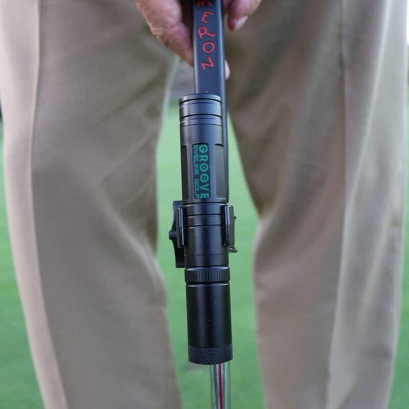 Šo mācību palīglīdzekli var viegli piestiprināt pie jebkura puttera kāta. Tas sniedz spēlētājam tūlītēju vizuālu atgriezenisko saiti – vienkārši iededziet krusta lāzera starus un salīdziniet tos ar sava puttera seju. Ir svarīgi saglabāt izvēlēto leņķi un taisnu puttera līniju – ja jūs novirzīsiet putteri, pagriezīsiet to, mainīsiet tā slīpumu vai leņķi, lāzera mērķa līnija vairs nebūs precīza, tāpēc ir svarīgi, lai jūsu satvēriens būtu stabils un stingrs un jūsu papēdis pēc iespējas taisns. Lāzera korpuss ir izturīgs, tas ir izgatavots tā, lai kalpotu pēc iespējas ilgāk, tiek izmantotas augstas kvalitātes stikla lēcas un polikarbonāta savienotājs. Groove+ lāzera uzstādīšana nav sarežģīta – atvienojiet vārpstas savienotāju un pārvietojiet to uz vēlamo pozīciju pēc iespējas tuvāk puttera galvai, pēc tam, kad esat iestatījis ideālo pozīciju – tā, lai lāzera krusts šķērsotu puttera galvu paralēli galvai, bet būtu vērsts perpendikulāri mērķim -, pēc tam uzmanīgi pievelciet lāzeru, lai spēles laikā tas vairs nekustētos.