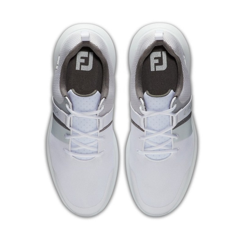 Footjoy Flex golfa apaviem piemīt noapaļotas pirkstgalu daļas raksturs ar standarta piegulumu pēdas priekšdaļā un pēdas arkā.