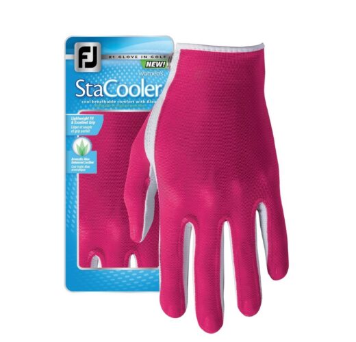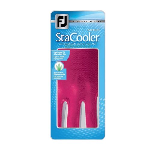 Footjoy StaCooler ir pirmie sieviešu golfa cimdi, kas lieliski pieguļ rokai un nodrošina siltumu, pateicoties ar alveju pildītai ādai. Elpojošs un elastīgs PowerNet™ Mesh tīklojums gar pirkstiem un locītavām nodrošina dzesējošu komfortu, vienlaikus uzlabojot piegulumu un elastību. Patentētā Aloe Vera ādas tehnoloģija nodrošina maigumu, sausumu un saķeri, vienlaikus aizsargājot rokas vislielākajā karstumā.
