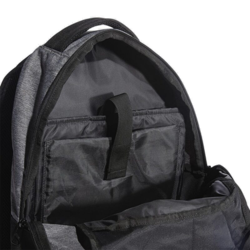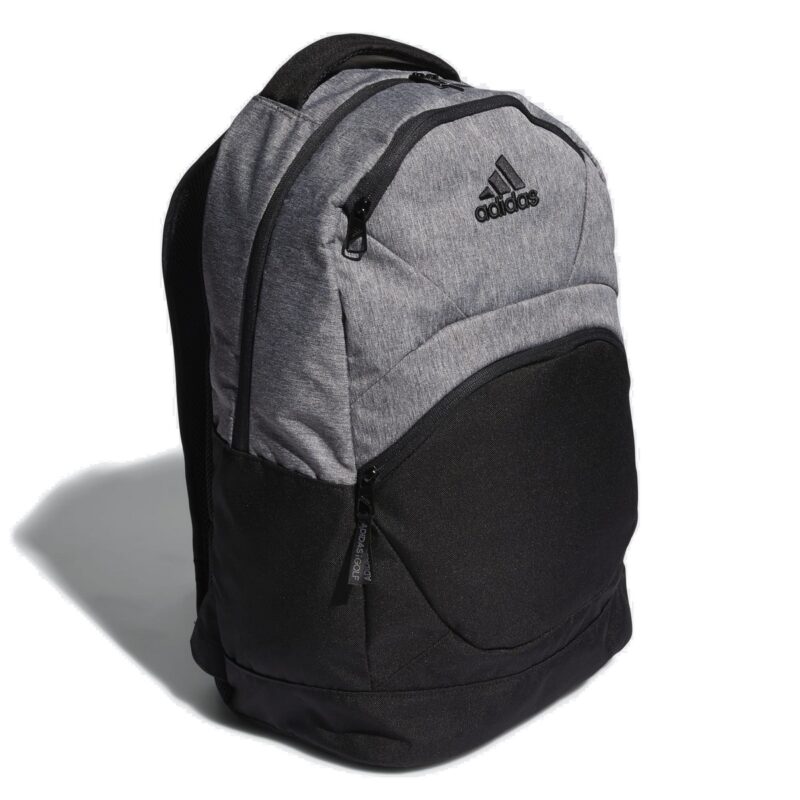 Adidas golfa mugursoma ir izgatavota no 100% pārstrādāta poliestera, kas saudzē dabas resursus un samazina izmešu daudzumu. Tai ir regulējama plecu siksna, priekšējās rāvējslēdzēja aizdares kabatas un sānu tīklveida kabatas.