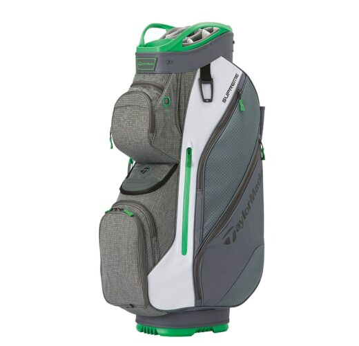 TaylorMade Supreme somiņa ir ideāla izvēle golfa spēlētājiem, kuri pieprasa vislabāko kvalitāti un modernu dizainu. Supreme golfa somai ir līdz pat septiņām stratēģiski izvietotām kabatām priekšpusē, lai ērti uzglabātu un piekļūtu visām nepieciešamajām lietām. Dubultās piederumu kabatas magnētiskā aizdare ļauj ātri izņemt nepieciešamos priekšmetus, savukārt lielā termoizolācijas kabata ar iebūvētu drenāžu nodrošinās ēdiena un dzērienu svaigumu un pareizo temperatūru visā apļa laikā. Pateicoties tādām golfam draudzīgām funkcijām kā iebūvētais puttera turētājs un ergonomiska siksnu sistēma, šo somu ir patīkami lietot, un tās stilīgais dizains noteikti pievērsīs uzmanību uz golfa laukuma.