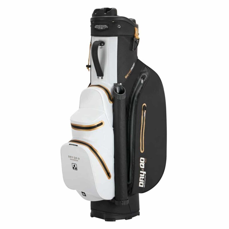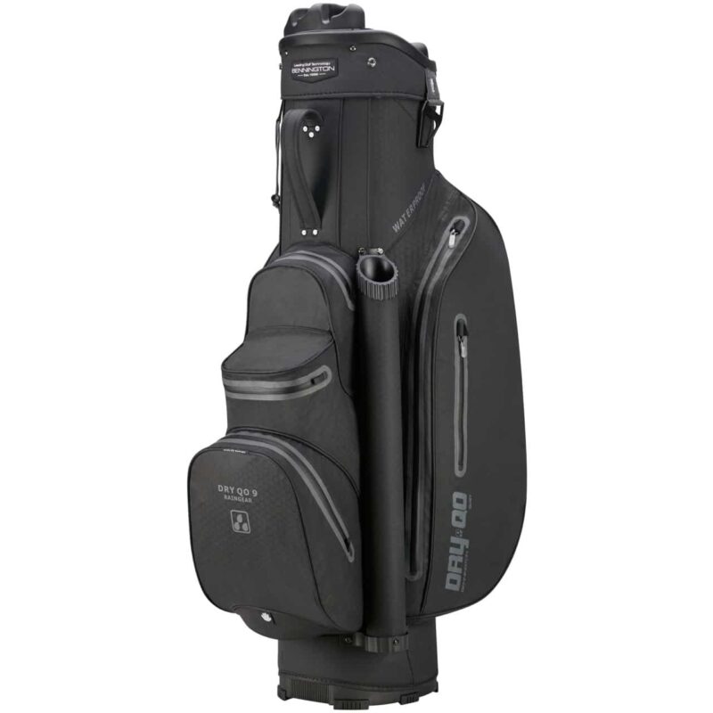 Bennington DRY-QO 9+ golfa somiņa ir izgatavota no īpašiem ūdensnecaurlaidīgiem materiāliem. Turklāt ūdensnecaurlaidīgie rāvējslēdzēji nodrošina, ka jūsu nūjas un piederumi paliek sausi jebkuros laikapstākļos.