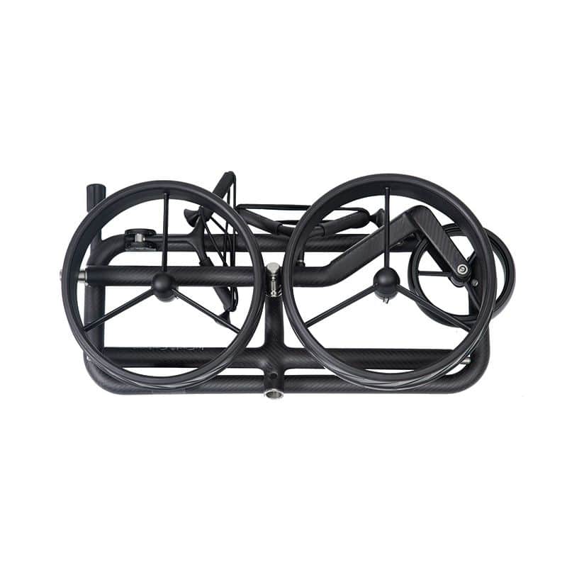 Pateicoties riteņu piestiprināšanas sistēmai, šie manuālie ratiņi ir ļoti labi salokāmi, un tos var viegli pārvadāt praktiskā oriģinālajā iepakojumā, kas ir liela priekšrocība. Tas ir izgatavots no nerūsējošā tērauda un oglekļa šķiedras materiāliem, kas padara to ļoti vieglu, tāpēc ar to ir viegli rīkoties jebkurā apvidū, un jūs novērtēsiet tā nelielo svaru ceļojot.