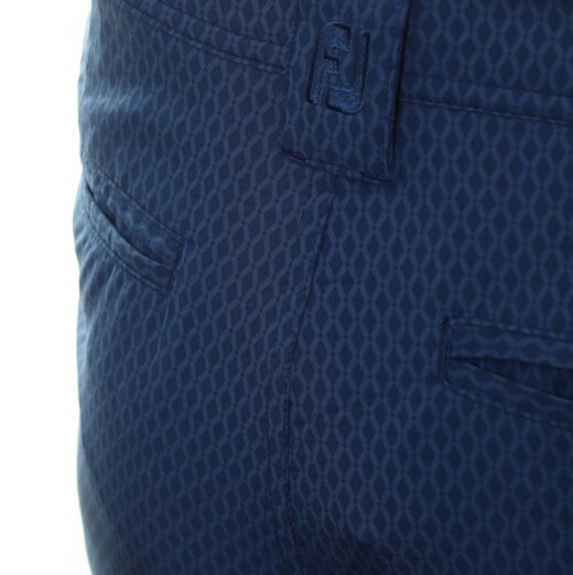 Footjoy Tonal Print šorti elegantā melnā krāsā – lieliska stila, komforta un funkcionalitātes kombinācija visprasīgākajiem golfa spēlētājiem. Šie uzmanību piesaistošie šorti ir izstrādāti, lai uzlabotu jūsu golfa apģērbu, vienlaikus nodrošinot izcilu veiktspēju uz laukuma. Šie šorti ir izgatavoti no augstas kvalitātes, viegla auduma un nodrošina lielisku elpojamību un mitruma novadīšanas īpašības, lai spēles laikā jūs būtu vēss un sauss. Smalkā apdruka piešķir izsmalcinātību klasiskajai melnajai krāsai, padarot tos par daudzpusīgu izvēli jebkurai golfa garderobei.Modernā piegriezuma forma nodrošina ērtu un stilīgu piegulēšanu visiem ķermeņa tipiem, savukārt jostasvietā ir regulējama cilpu sistēma, kas nodrošina personalizētu un drošu piegulēšanu spēles laikā. Footjoy Tonal Print šortiem ir arī vairākas kabatas, kas nodrošina pietiekami daudz vietas t-kreklu, rezultātu karšu un citu svarīgāko piederumu glabāšanai.
