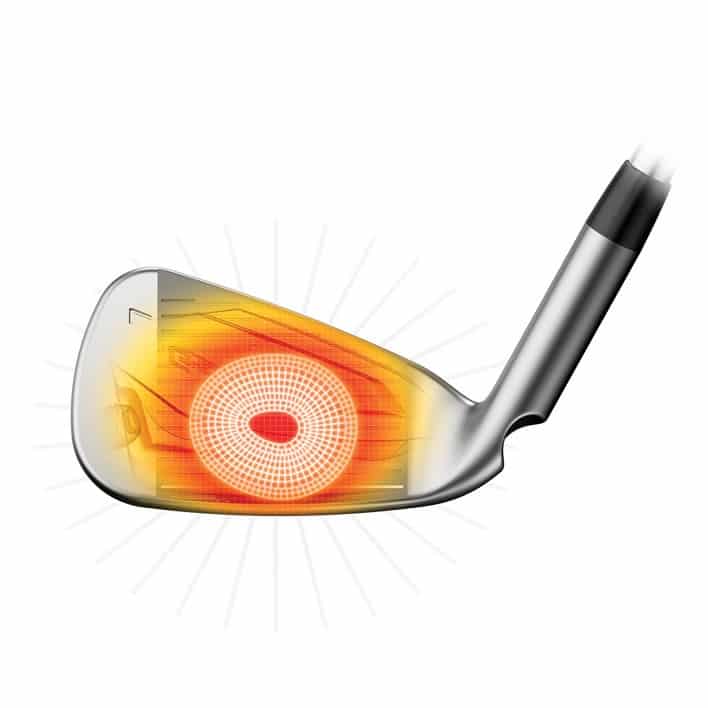 Pateicoties izsmalcinātajam biezumam svarīgākajos sitiena virsmas punktos, tas spēj elastīgāk un efektīvāk darboties, palielinot enerģijas pārnesi uz golfa bumbiņu. Lielāka atstarpe aiz sitiena virsmas arī rada nedaudz augstāku bumbiņas lidojumu, kas ļauj mums trāpīt pa zaļo zāli ar garākām nūjām un panākt labu bumbiņas apstāšanos.