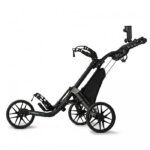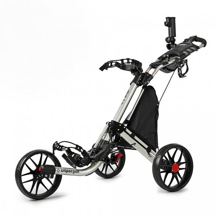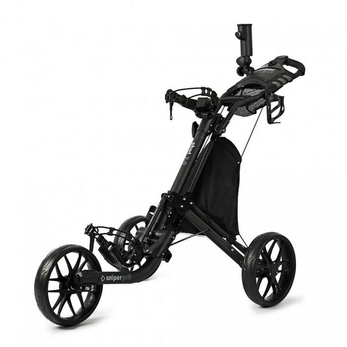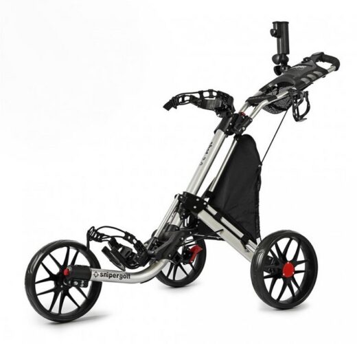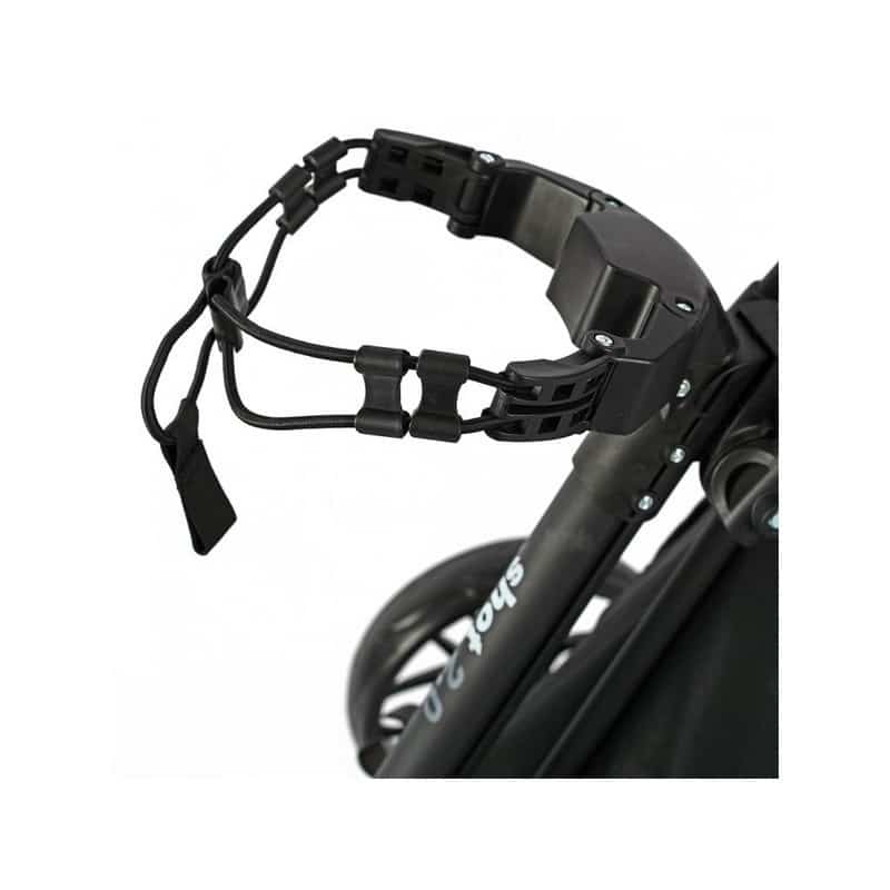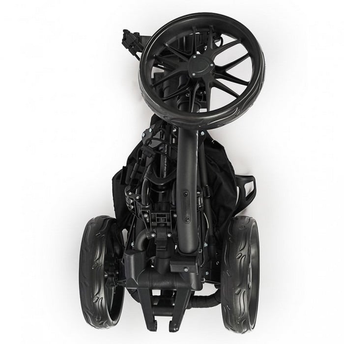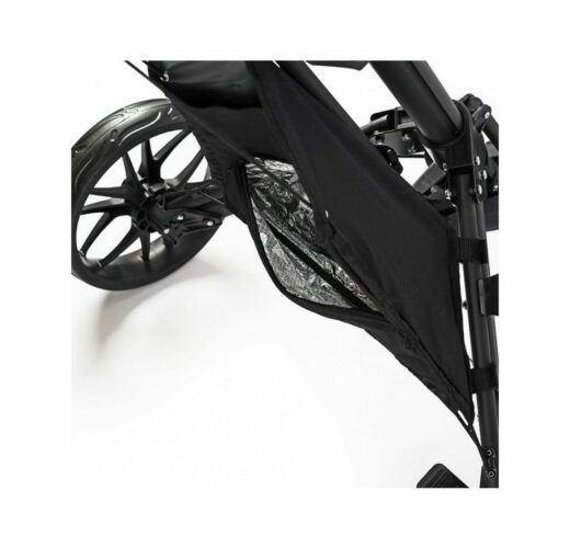 Jūs priecēs arī polsterētais rokturis, ko var pielāgot atbilstoši katra spēlētāja vēlmēm. Tāpēc nav problēmu šo ļoti vieglo golfa ratiņu dalīt, piemēram, ar partneri vai bērniem. Katrs to var iestatīt pēc saviem ieskatiem. Protams, ir arī kājbremze, kas nodrošina vienmērīgu apstāšanos arī uz nogāzes, un daudz aprīkojuma, piemēram, turētājs rezultātu kartei, lietussargam vai pārtikas un dzērienu maisiņam.