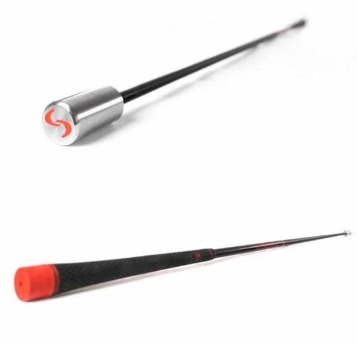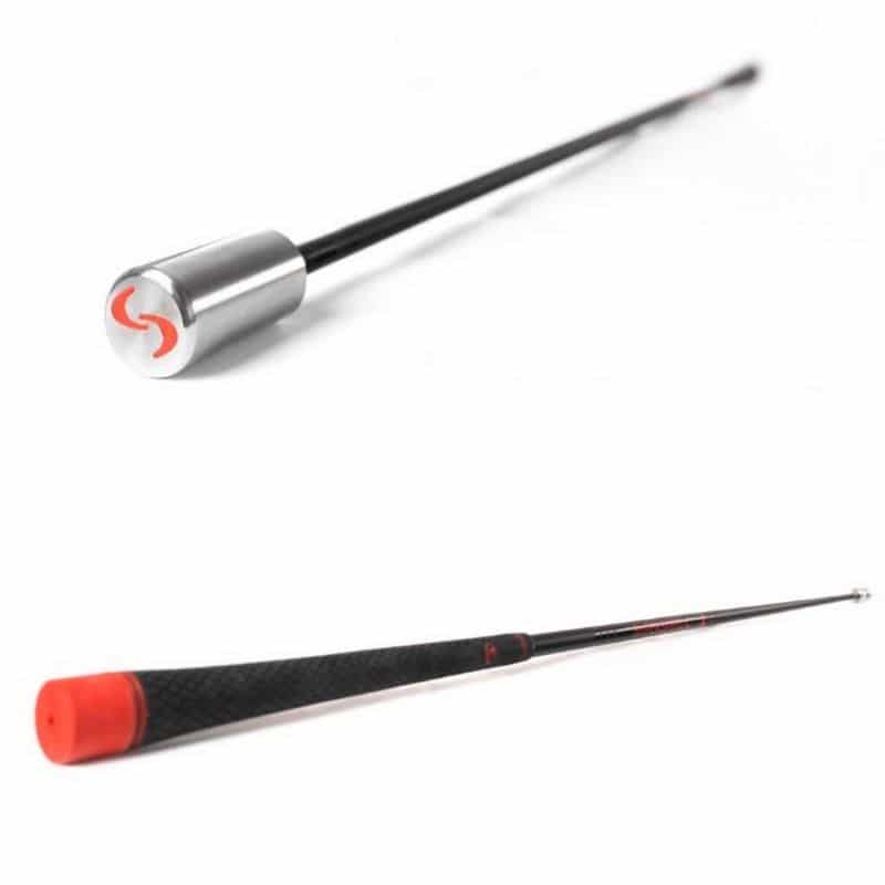 Treniņu nūjā pretsvars ir novietots augšpusē zem roktura, tāpēc nūjas smaguma centrs ir ievērojami augstāk. Tā rezultātā tieši zem mūsu rokām pārvietojas vēl viens elements, kas liek mums vairāk un ātrāk atslābināt roku, turklāt stiprina spēlētāja apakšdelma spēku.