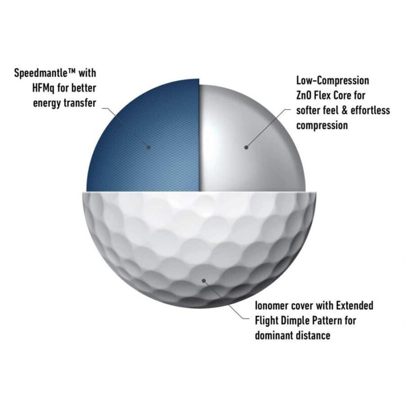 Zems kodola saspiešanas līmenis apvienojumā ar jauno aerodinamiku, ko nodrošina ārējā apvalka iedobumi, nodrošina bumbiņu, kas lido pa daudz augstāku trajektoriju, lai sasniegtu maksimālo pārnesto attālumu. Ja jums patīk īsā spēle uz zaļo zālienu, jūs ne tikai izbaudīsiet mīkstu šūpoles izjūtu, bet arī lieliski kontrolēsiet bumbiņas triecienu vai sitiena gaitu.