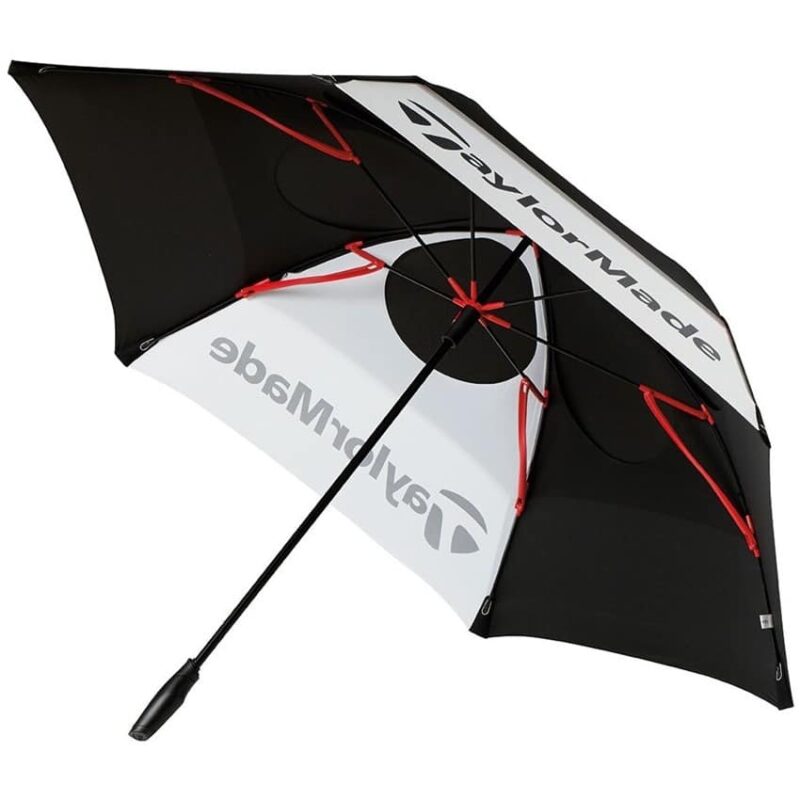 Golfa lietussargs ar lielu 68´´ (aptuveni 170 cm) diametru nodrošina jums un jūsu golfa aprīkojumam perfektu aizsardzību, pateicoties dubultā jumta sistēmai. Turklāt tam ir viegls rokturis, kas izgatavots no lidmašīnas alumīnija, un ergonomisks rokturis, kas ļauj to ērti lietot, neraugoties uz lietussarga lielumu. Šī konstrukcija ir pielāgota jebkādiem laikapstākļiem, īpaši vējainam laikam, un tās stabilitāte novērš nejaušu apgāšanos. Ar šo eleganto palīgu jūs nepārsteigs pat sliktākie laikapstākļi.
