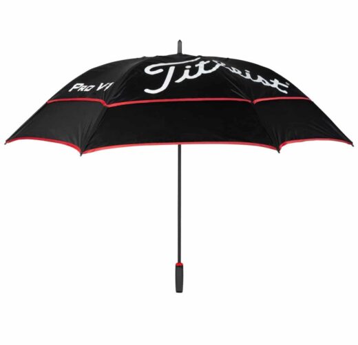 Šis golfa lietussargs ir viens no golfa piederumiem, ko neviens golfa spēlētājs nedrīkst palaist garām. Dubultais rāmis ir izgatavots no elastīga un ļoti izturīga materiāla. Spēcīgais locīšanas mehānisms nodrošina visas konstrukcijas stabilitāti triecienu laikā. Dubultais lietussargs ar pretapgāšanās tehnoloģiju ir izgatavots no materiāla, kas nodrošina brīvu gaisa plūsmu, tāpēc lietussargs nesaplaisā pat stiprā vējā. Tomēr ir arī ergonomisks rokturis, kas pārklāts ar gumijas slāni, lai nodrošinātu labāku satvērienu. Lietussargs aizsargā arī pret UV stariem.